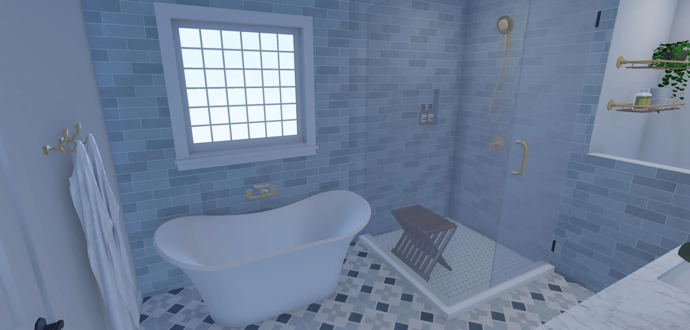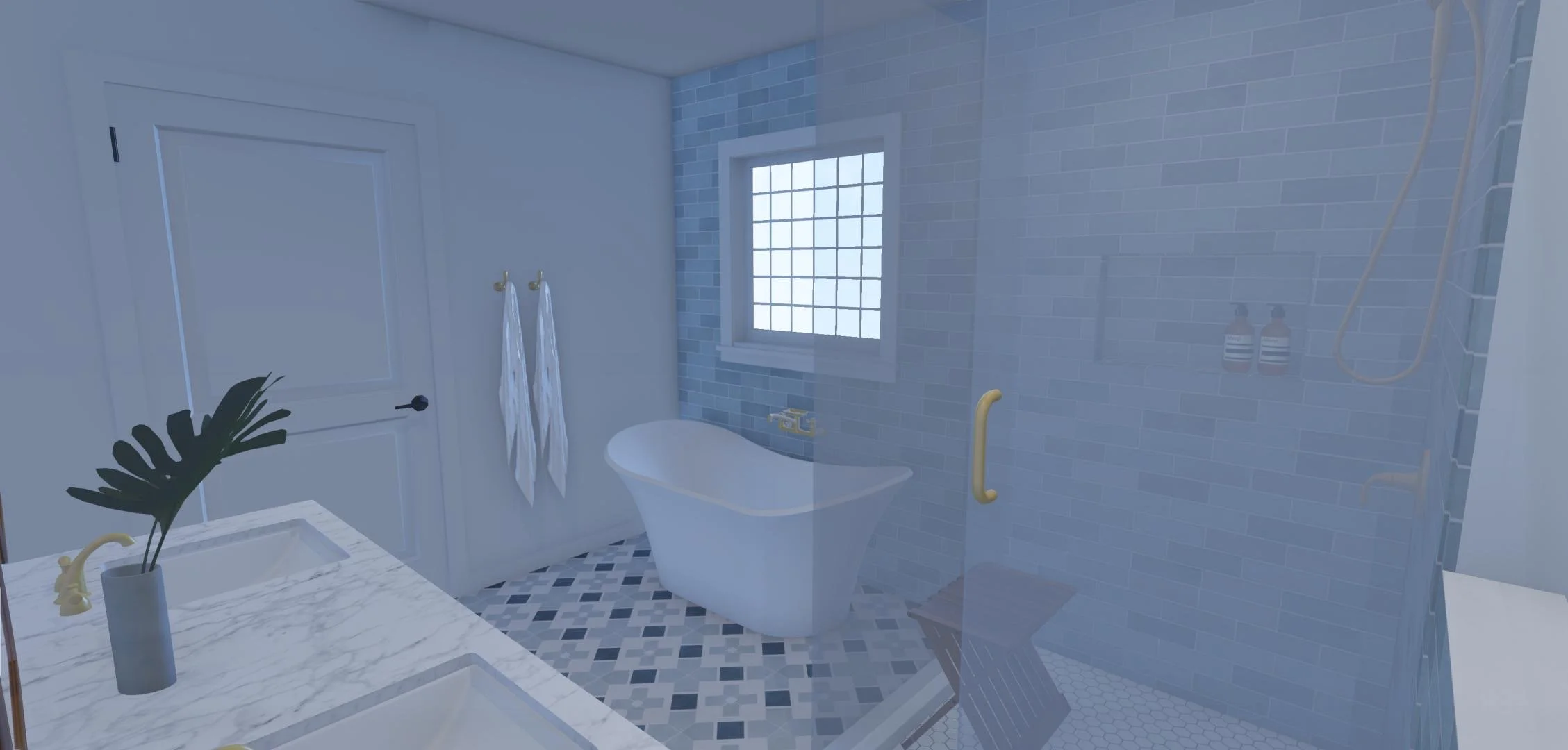 Despite residing out of state, the clients of this charming blue bathroom enjoyed seamless communication through virtual meetings, guaranteeing that every detail—from serene blue hues to sophisticated fixtures—surpassed their expectations.